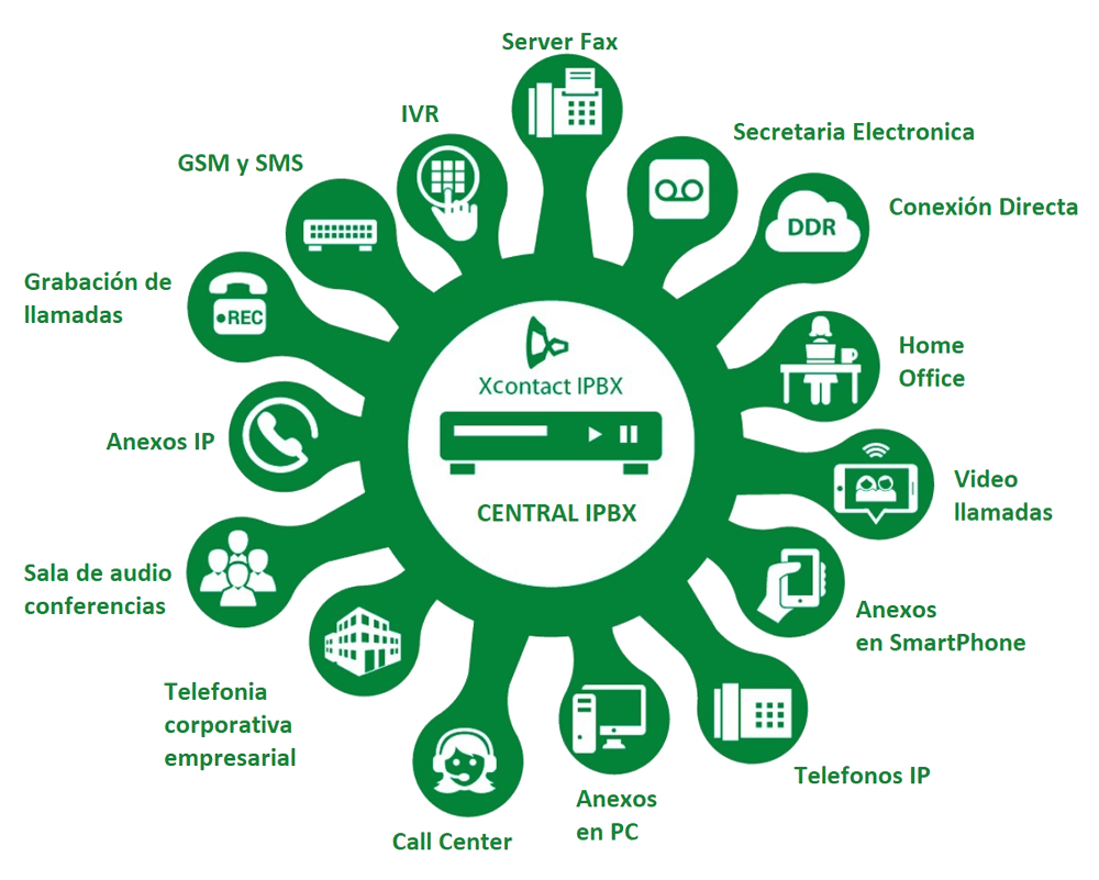 Xcontact IPBX es un producto desarrollado por X5 Soluciones, registrado y patentado como una solución completa de comunicación empresarial y tiene en su ADN las principales características de una PABX Corporativa, pero con muchas más funcionalidades.